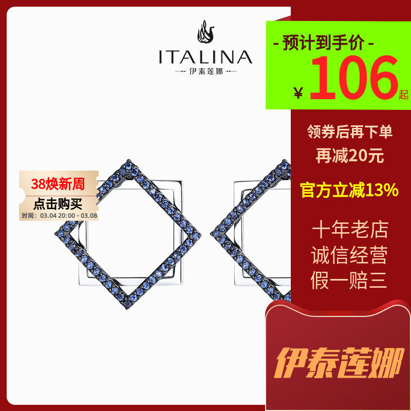 伊泰莲娜S925银耳钉女小众个性感新款潮冰凌耳环几体方块时尚耳饰