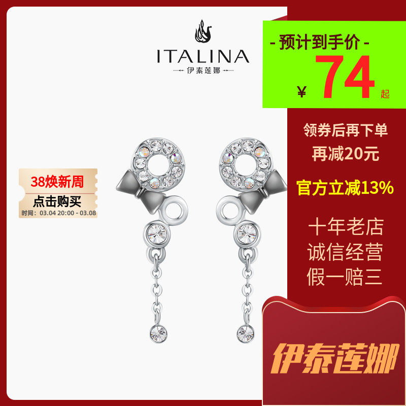 伊泰莲娜耳环女少女梦系列简约日韩长耳坠显脸瘦甜美风蝴蝶结耳钉
