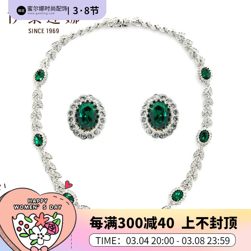 伊泰莲娜高贵典雅宝石项链耳钉礼盒套装送人爆款情人节礼物
