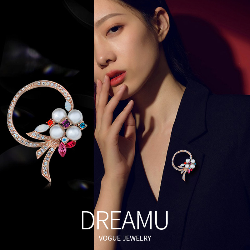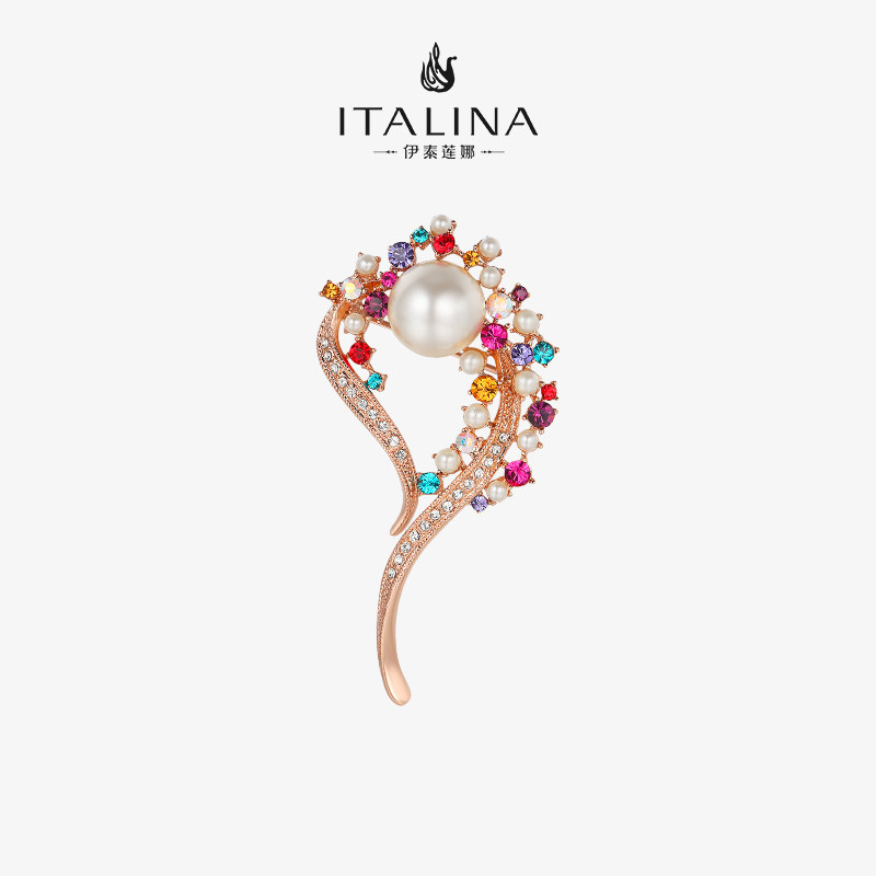 伊泰莲娜高档花朵珍珠胸针女水晶胸花精致设计高级西服别针配饰品