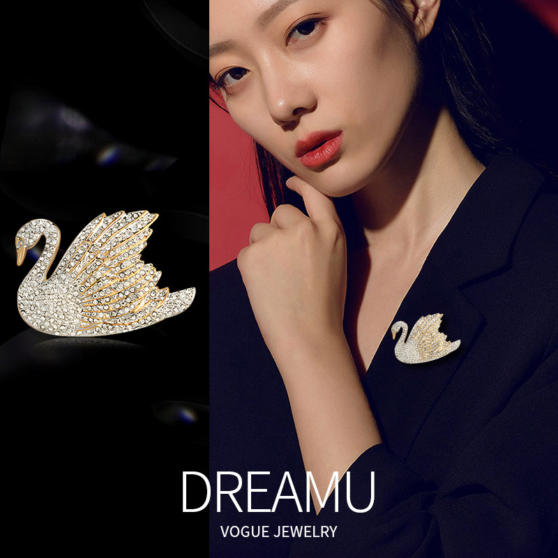 伊泰莲娜高档天鹅胸针女水晶胸花气质设计高级西服别针配饰品礼物
