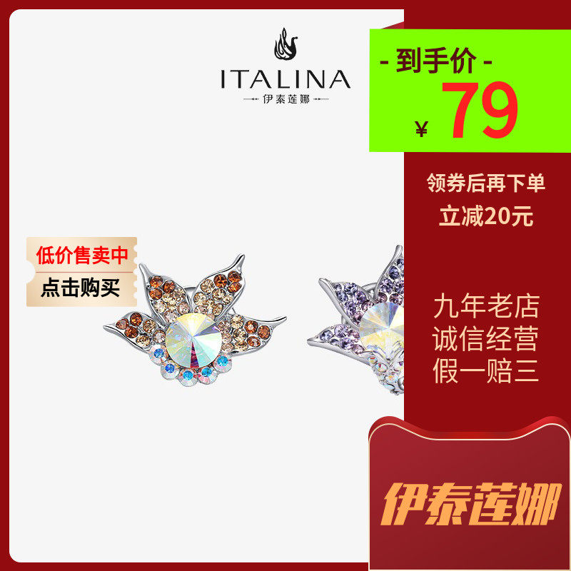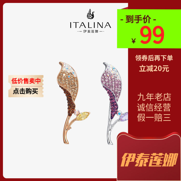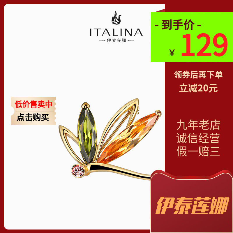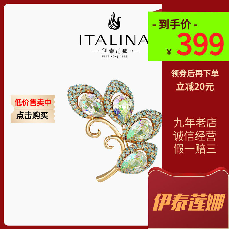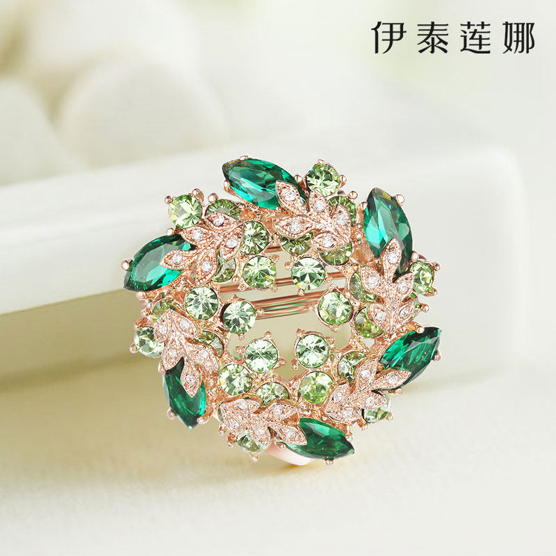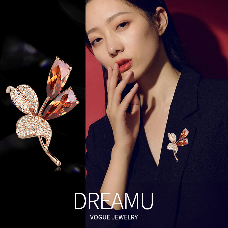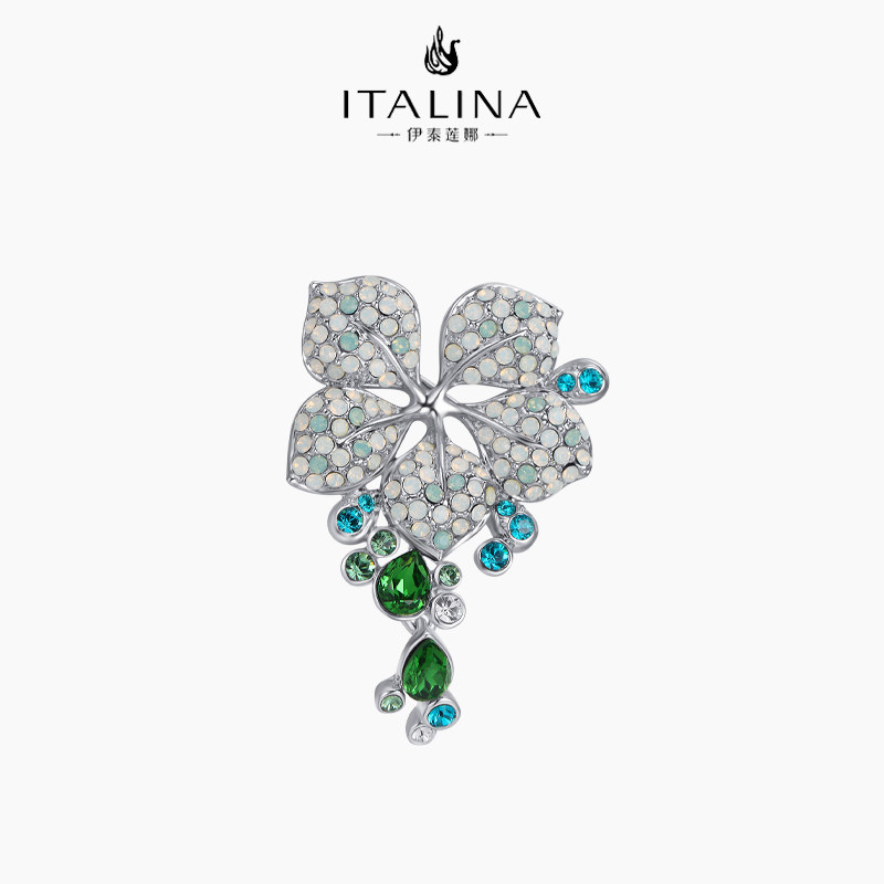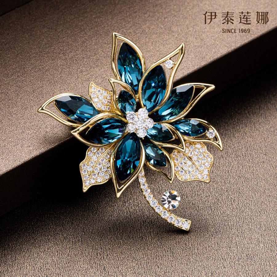 伊泰莲娜高档双叶花胸针女水晶胸花气质高级感西服别针配饰品礼物