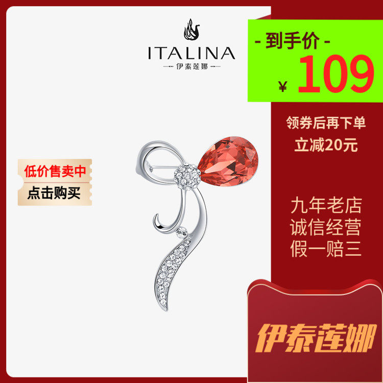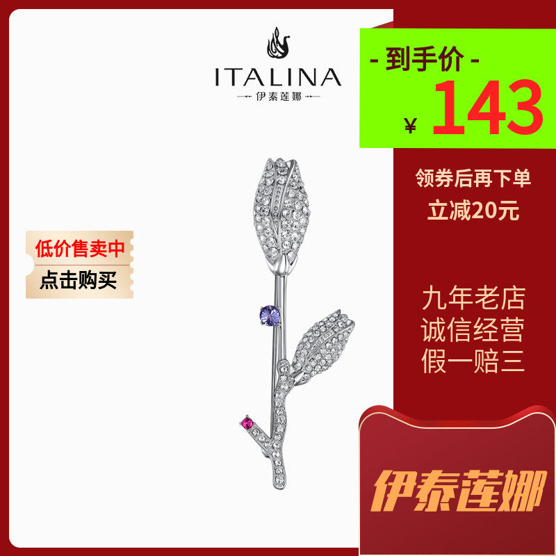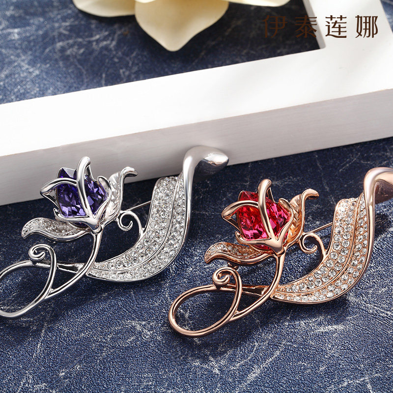 伊泰莲娜玫瑰花胸针爱神红水晶香槟晶胸花女礼盒礼物正品爆款