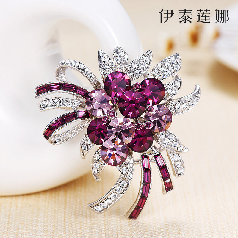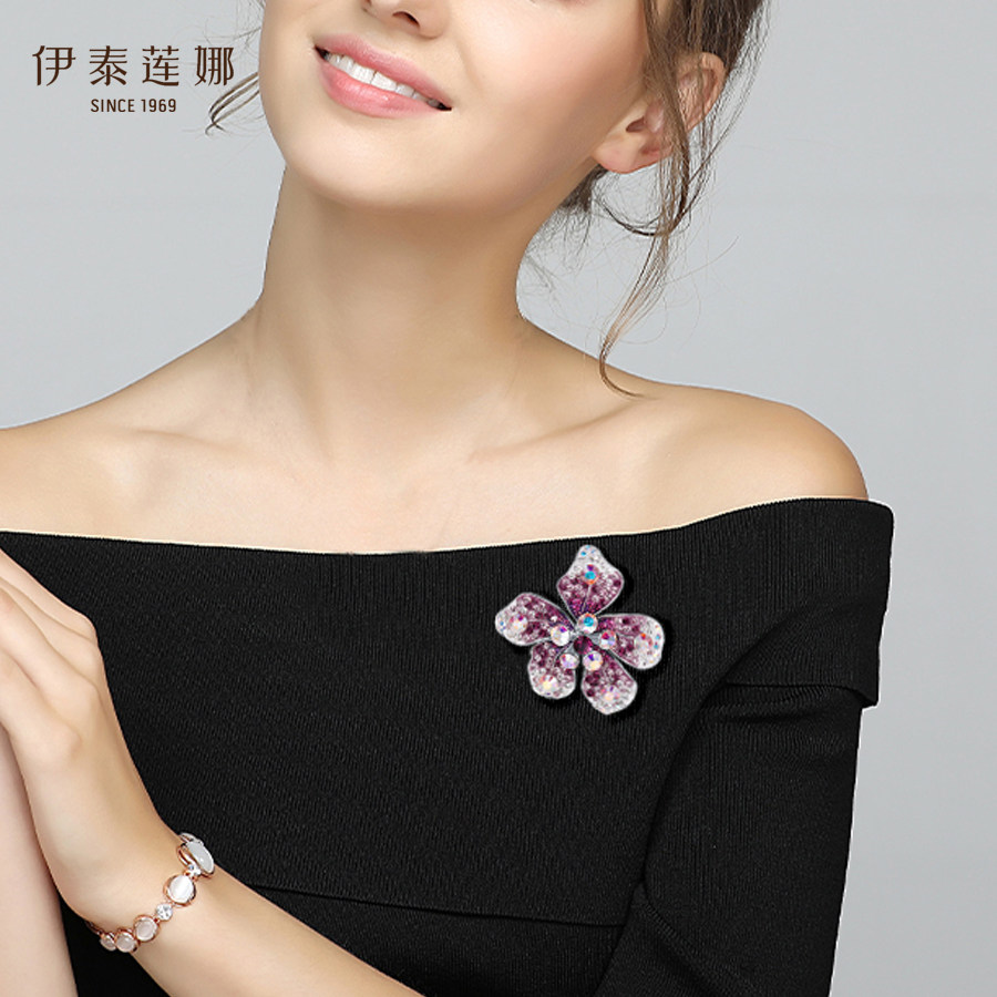 伊泰莲娜紫花繁烟胸针渐变色仿水晶饰品胸花女情人节七夕礼物礼品