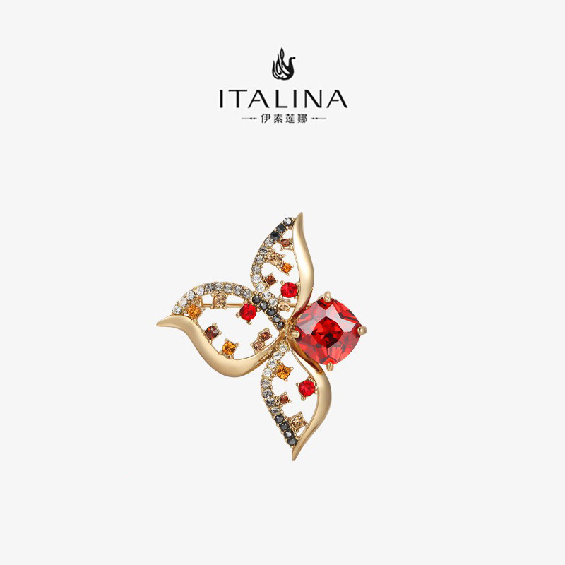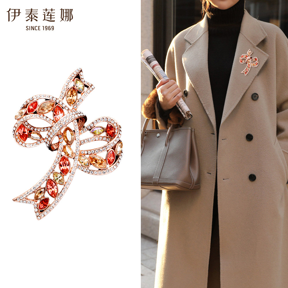 【礼盒包装】伊泰莲娜胸针时尚蝴蝶结胸花红色西装配饰送长辈礼物