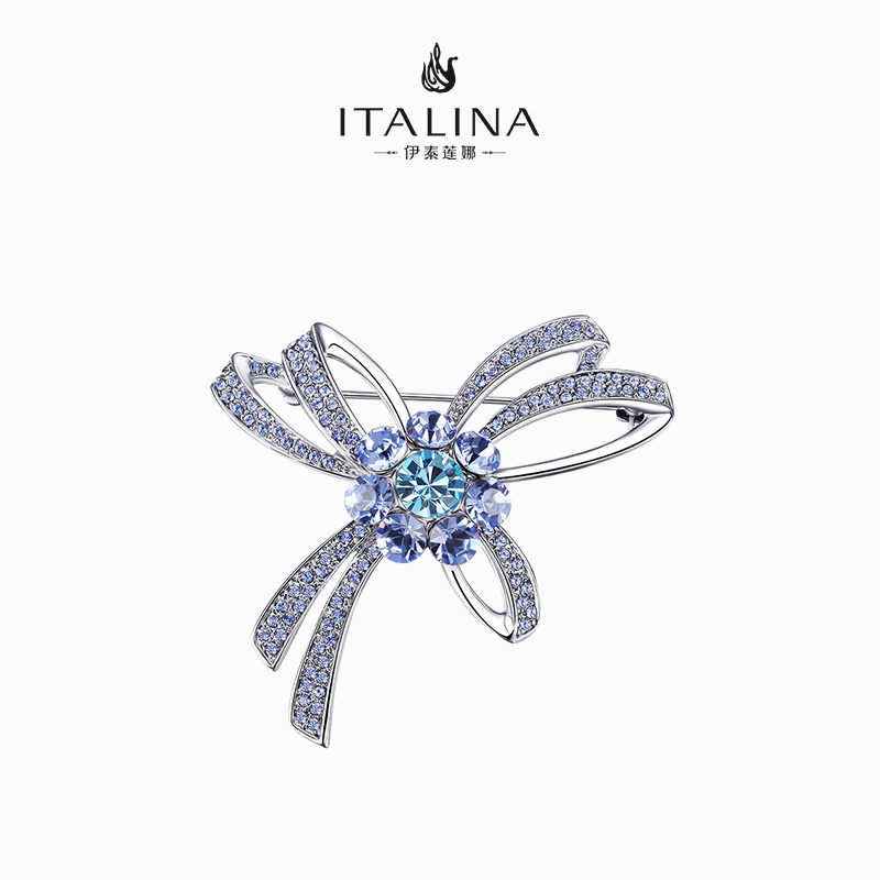 【礼盒包装】伊泰莲娜胸针女胸花仿水晶蓝色渐变毛衣链胸针两用