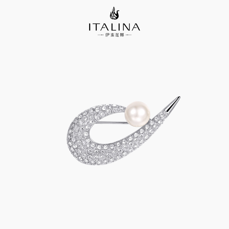 伊泰莲娜胸针女简约弦月仿珍珠小西装毛衣百搭小神器胸花气质别针