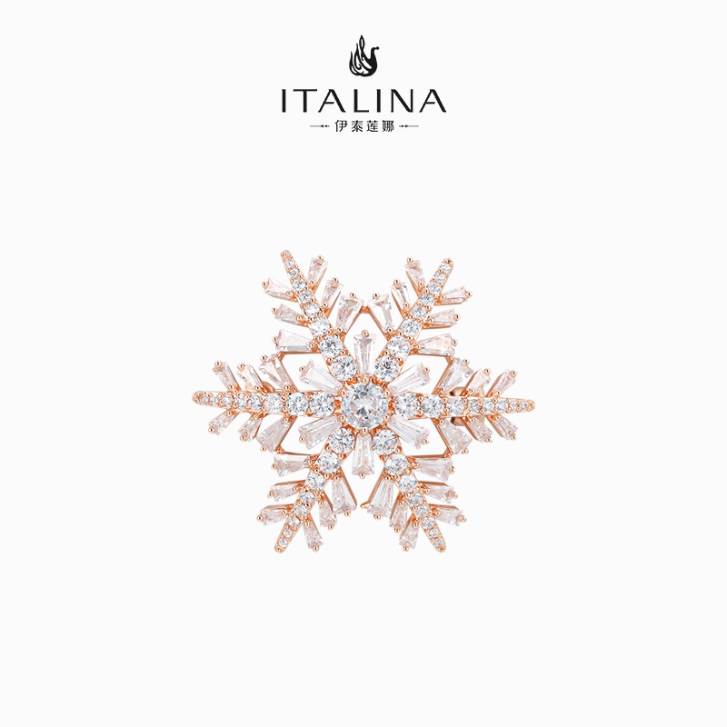 旋转雪花白金色双层胸针高级感防走光别针锆石胸花女伊泰莲娜