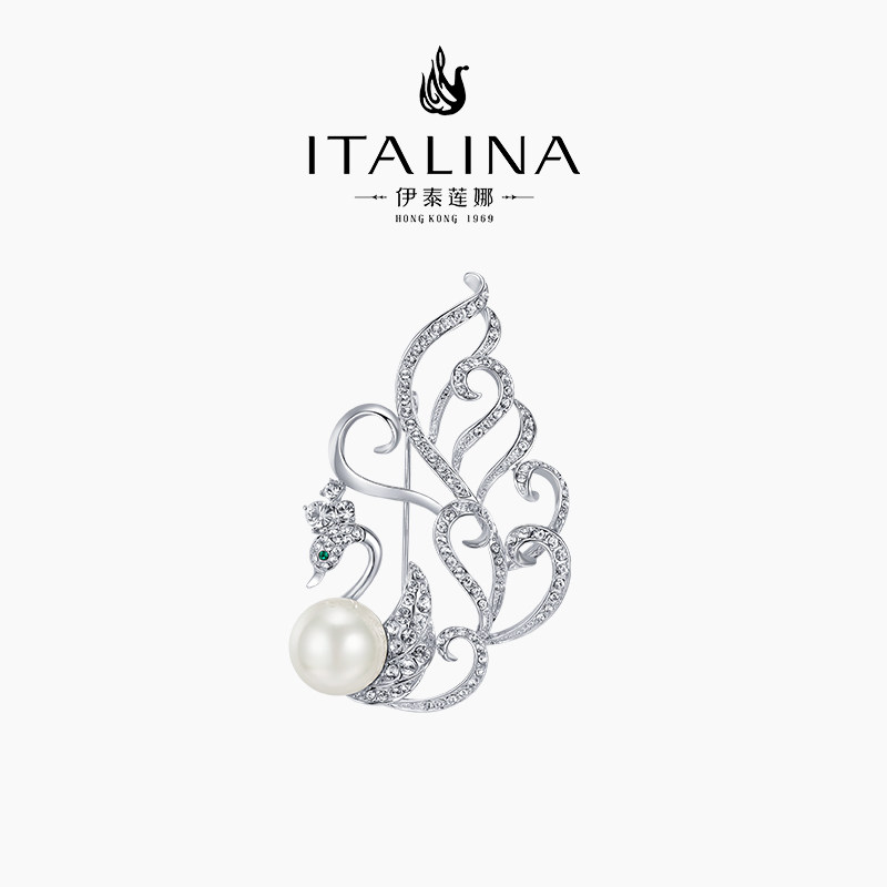 伊泰莲娜仿珍珠西装外套小众胸针外套精致小天鹅别针扣针皓羽系列