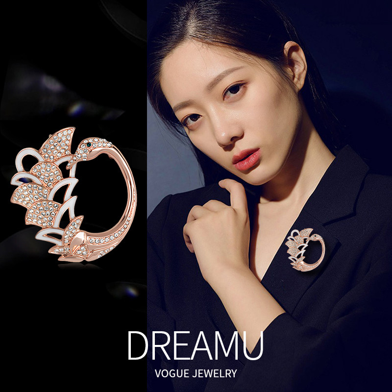 伊泰莲娜高档天鹅湖胸针女水晶胸花精致设计感西服别针配饰品礼物