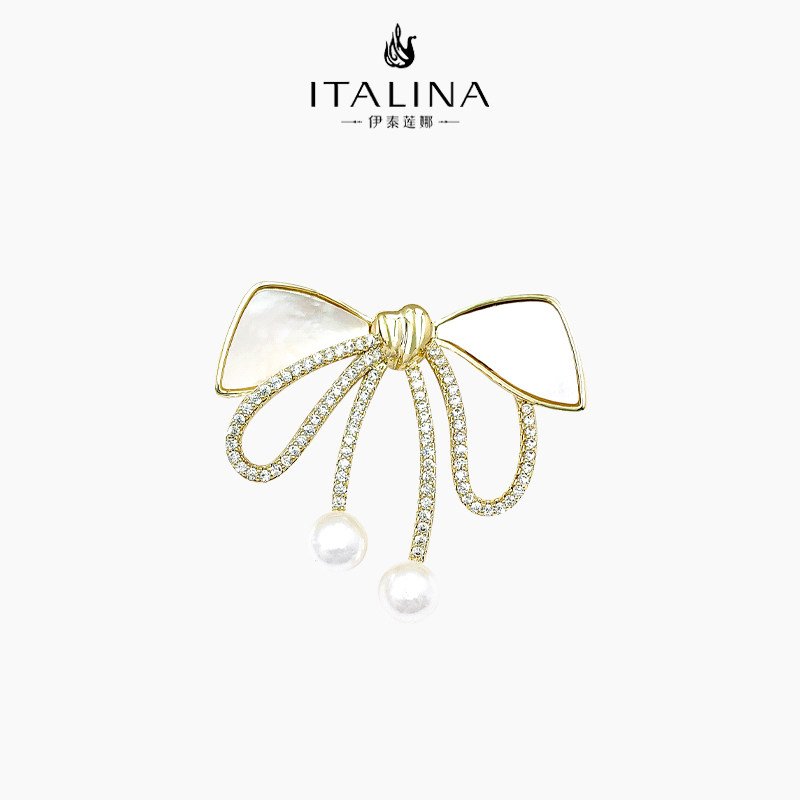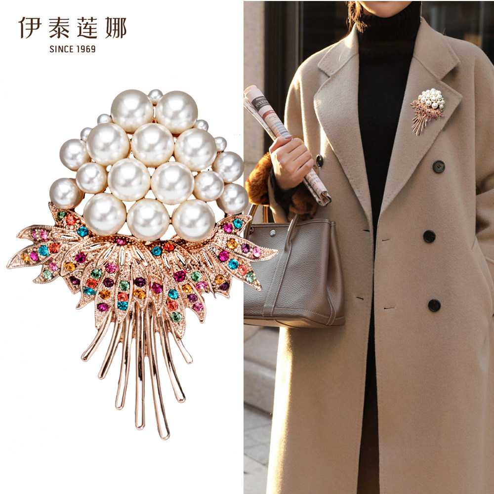 【礼盒包装】伊泰莲娜胸针女仿珍珠奢华胸花别针配饰西装花朵造型