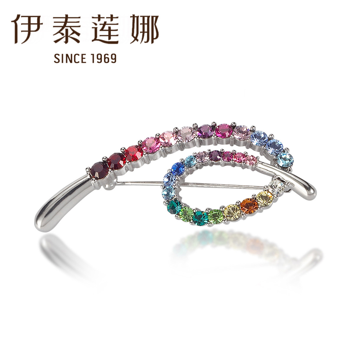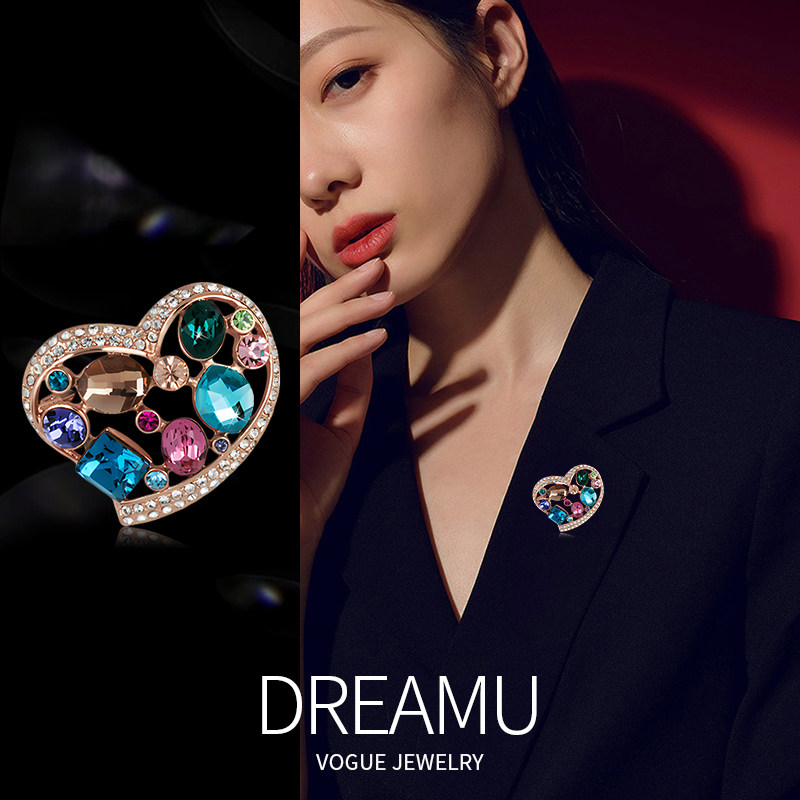 伊泰莲娜高档七彩爱心胸针女水晶胸花精致设计高级西服别针配饰品