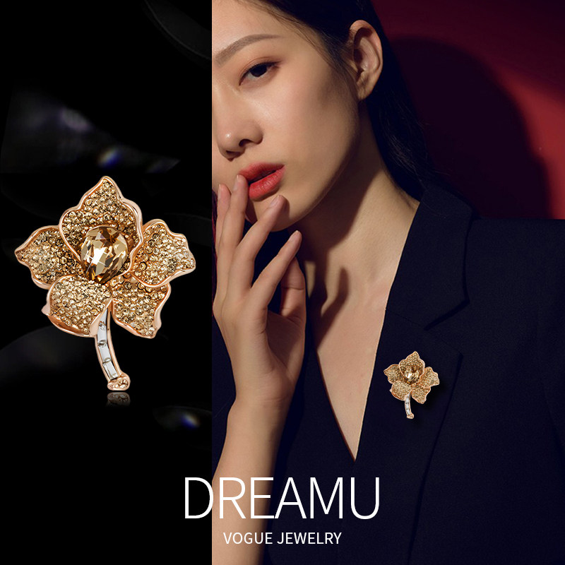 伊泰莲娜杏运相伴仿水晶胸针女大衣配饰扣针胸花西装别针