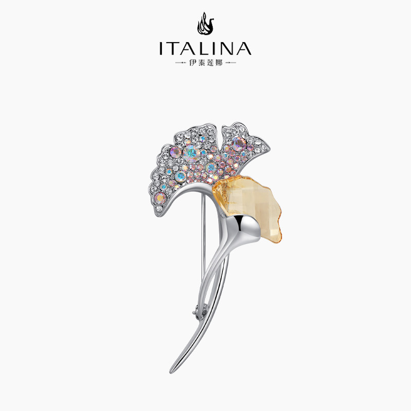 伊泰莲娜胸针女 月光银杏时尚叶子胸花饰品大衣别针 优雅节日礼物