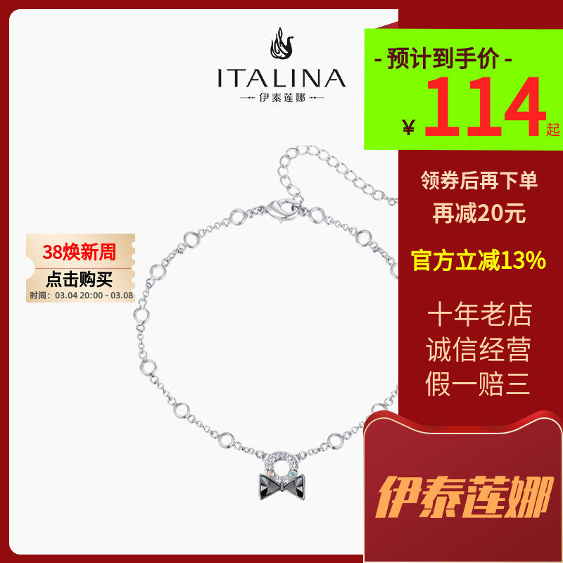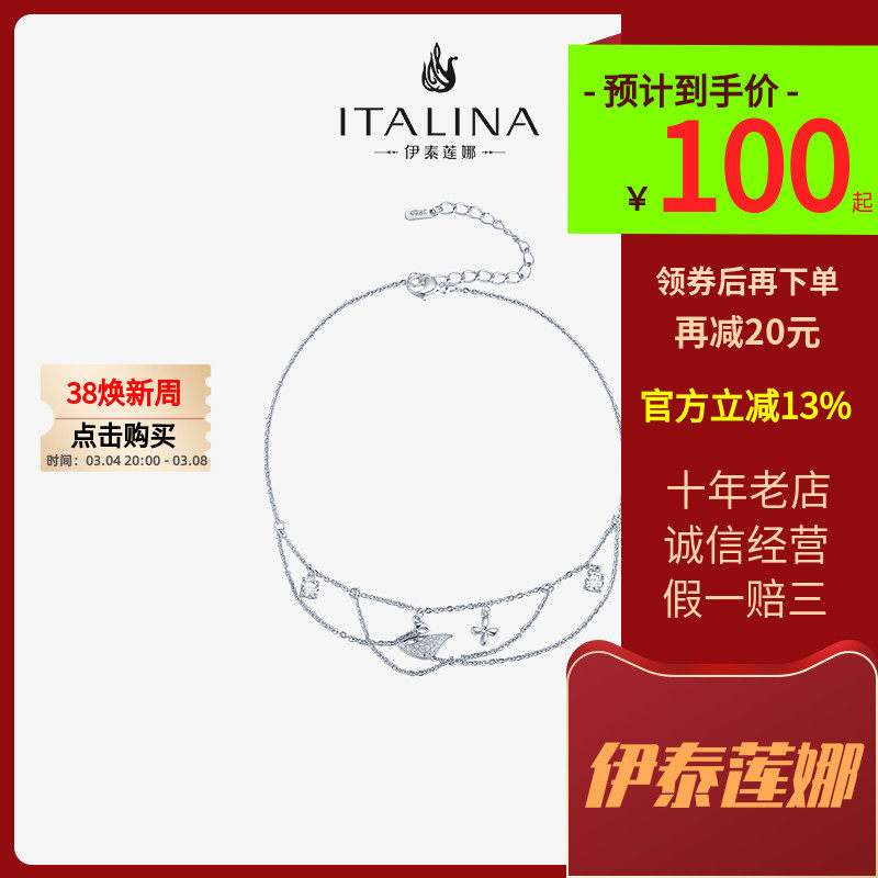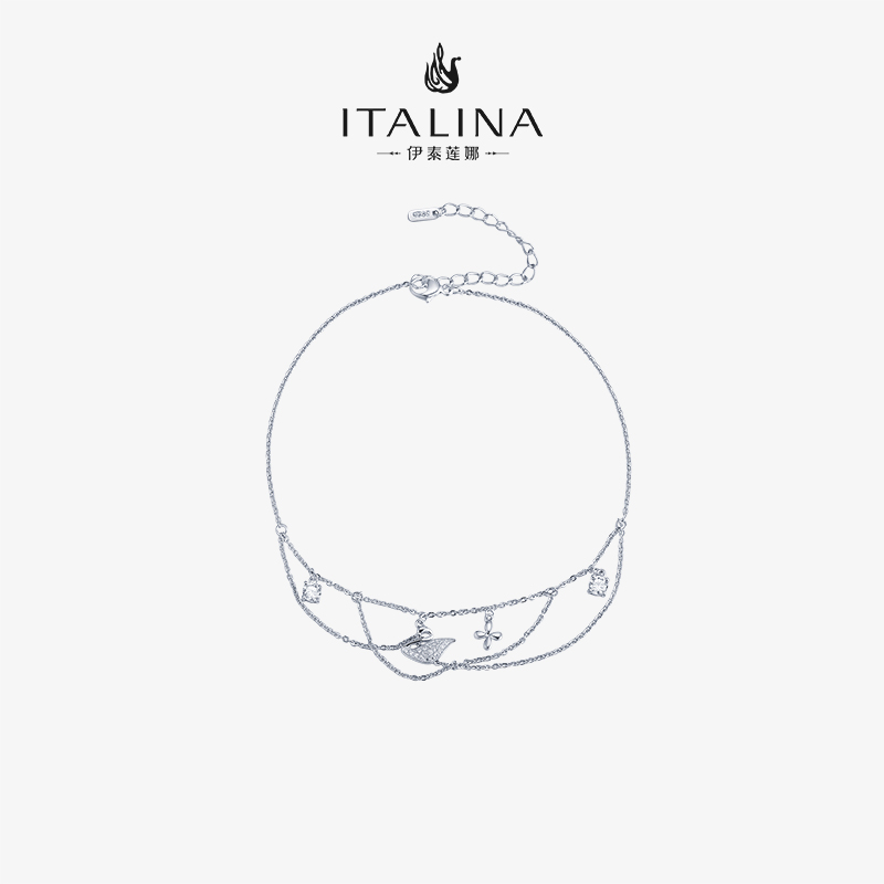 伊泰莲娜脚链天鹅S925银 仿水晶幸运寓意小巧灵动时尚 送女友礼物