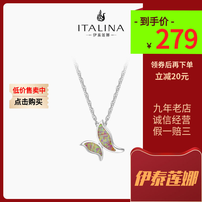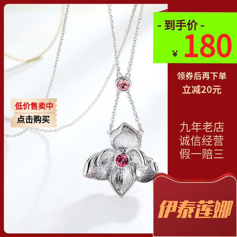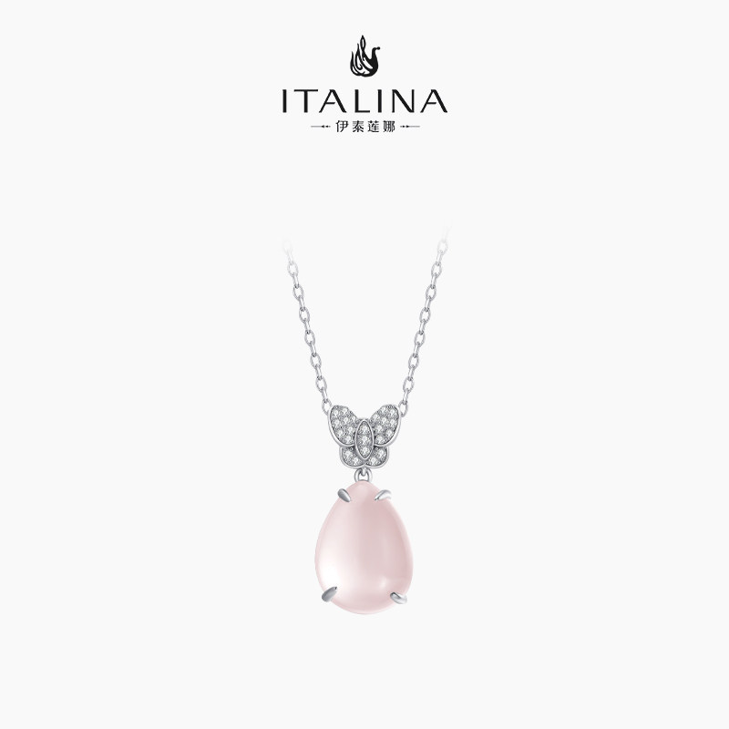 伊泰莲娜花蝶粉晶项链女转运珠ins风网红蝴蝶925纯银锁骨链送女友