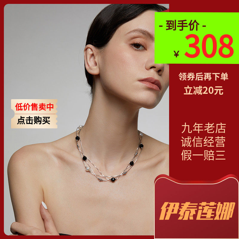 伊泰莲娜925银项链淡水珍珠多层锁骨链2022新款玛瑙黑色吊坠