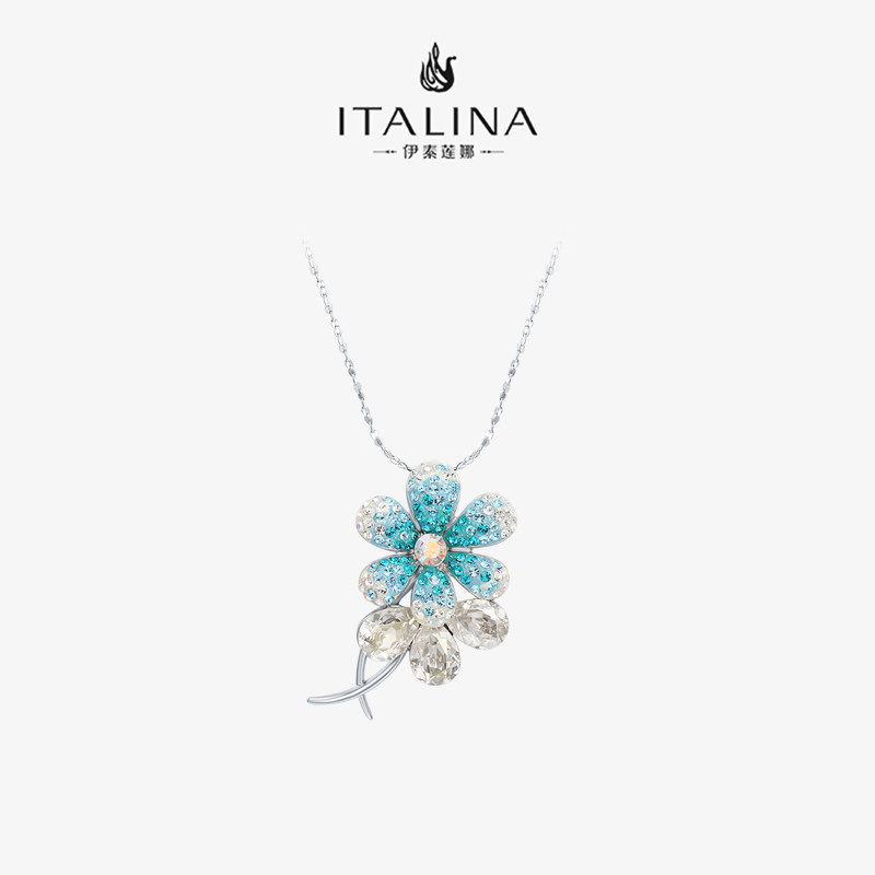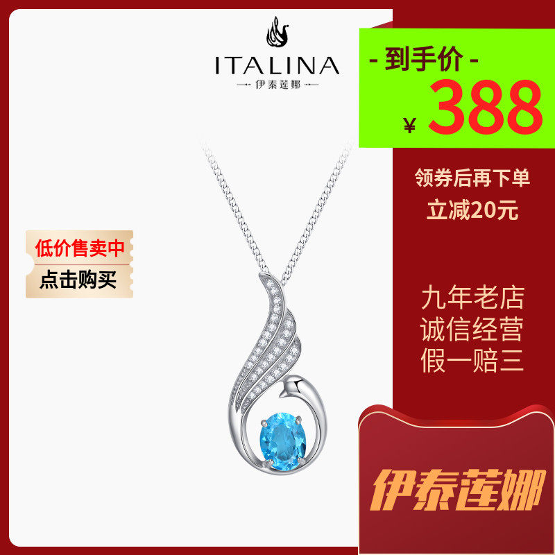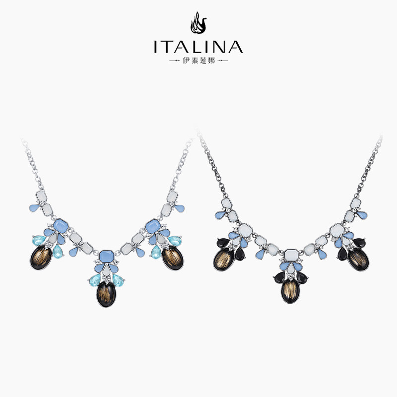 伊泰莲娜银项链女925银正品小天鹅锁骨链高级气质感清爽蓝色配饰