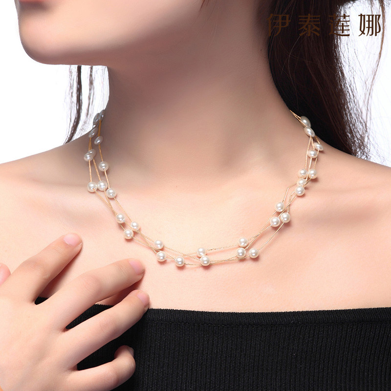 伊泰莲娜仿珍珠女锁骨短链多层韩版个性项链 时尚简约百搭首饰品