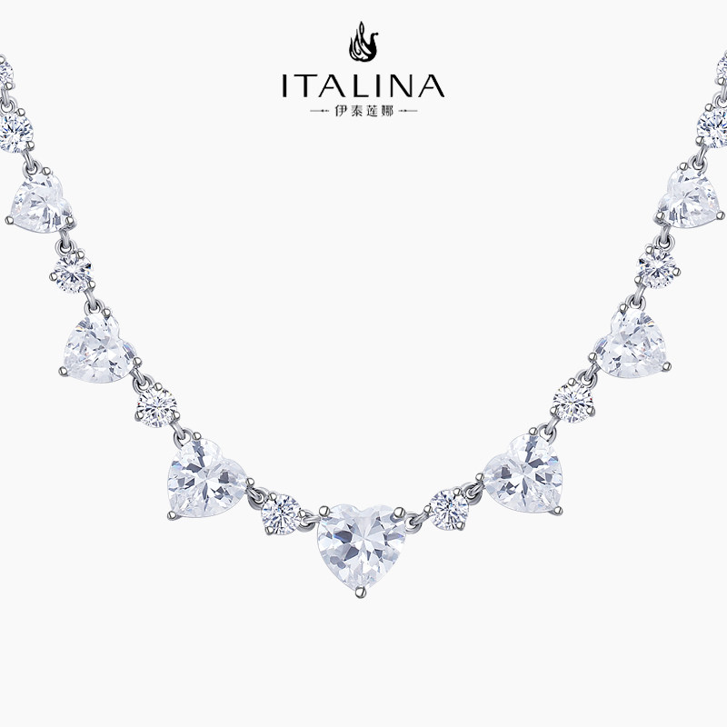 伊泰莲娜项链 女日韩版时尚简约短链心形吊坠925银芯动情人节礼物