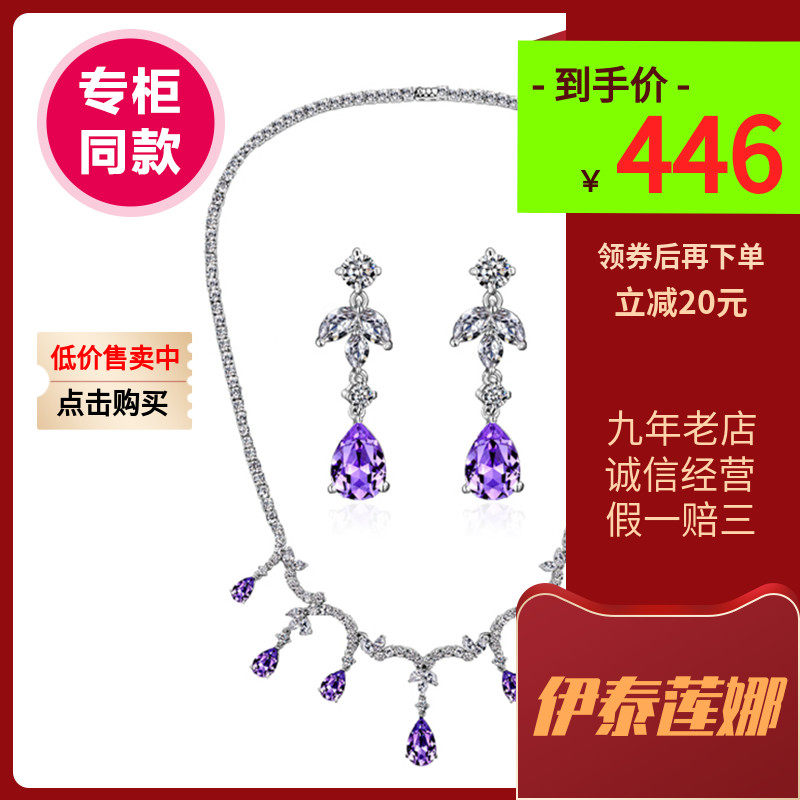 伊泰莲娜高贵典雅宝石项链耳钉礼盒套装送人爆款情人节礼物
