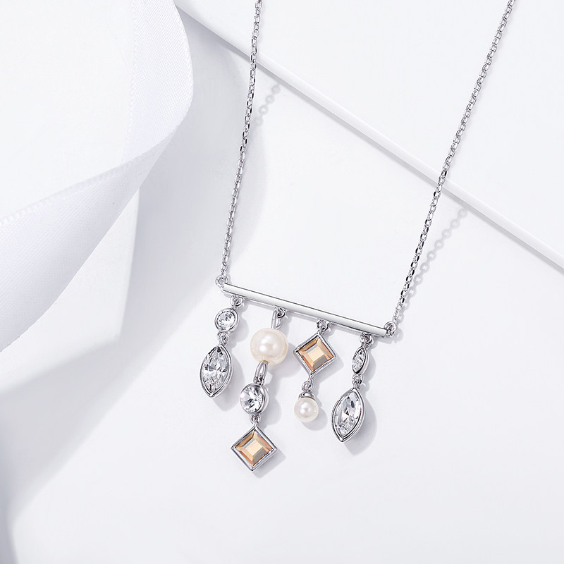 伊泰莲娜项链女简约s925银流行OL珠缀项链仿珍珠锁骨链