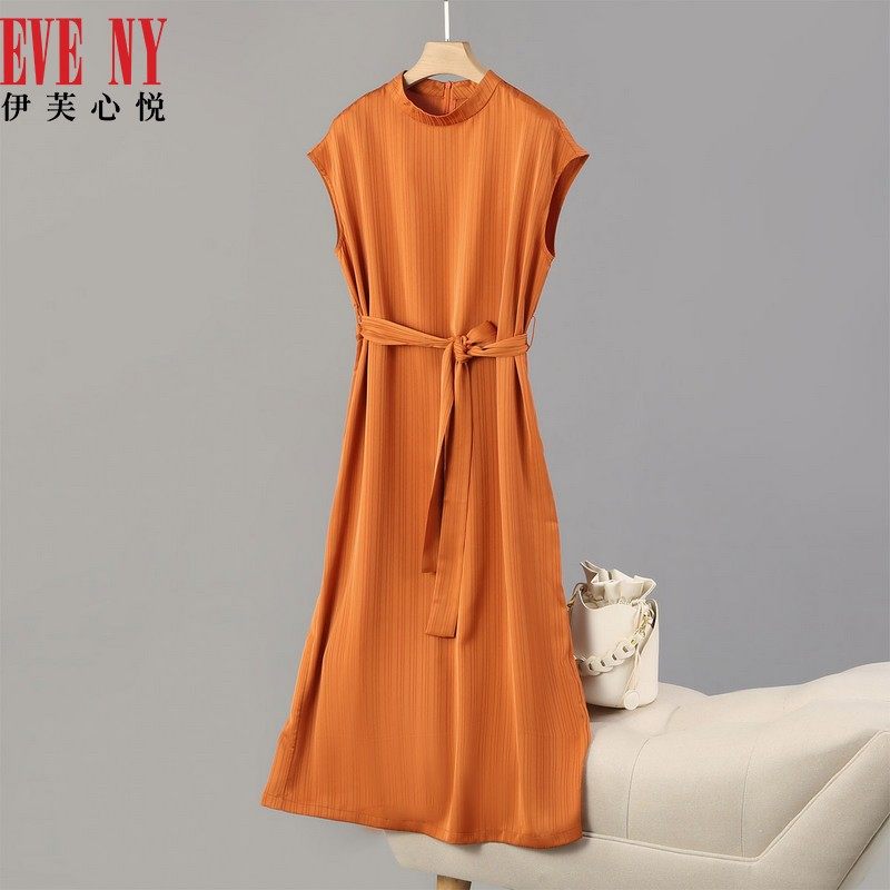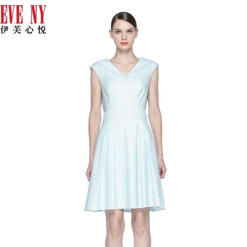 EVENY伊芙心悦夏季新款气质时尚无袖收腰显瘦中长款连衣裙