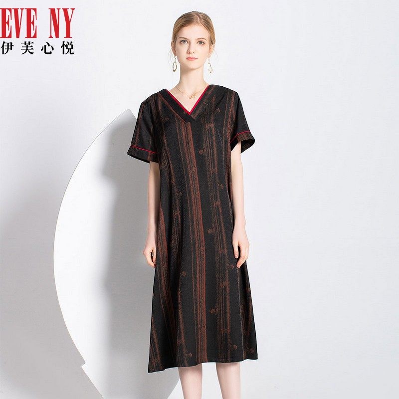 EVENY伊芙心悦夏季新款时尚V领香云纱风气质百搭休闲连衣裙女