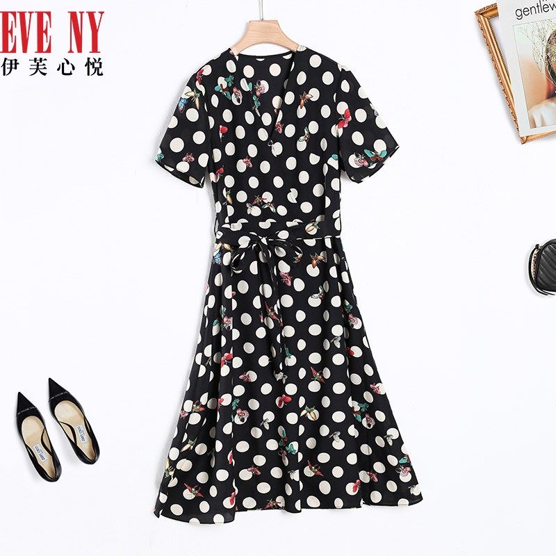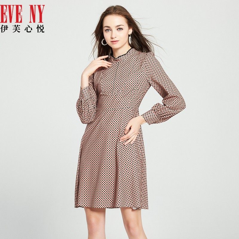 EVENY伊芙心悦春季优雅波点蚕丝高腰连衣裙