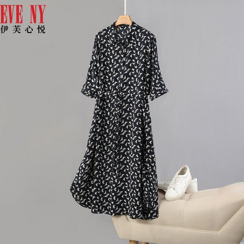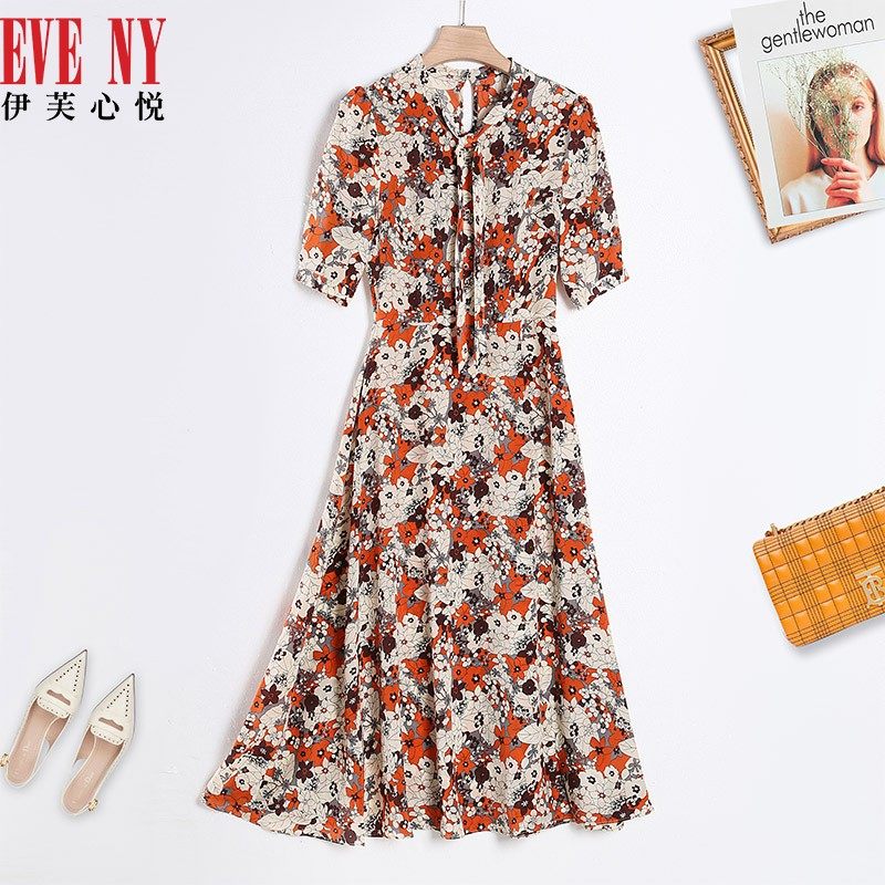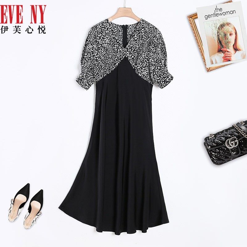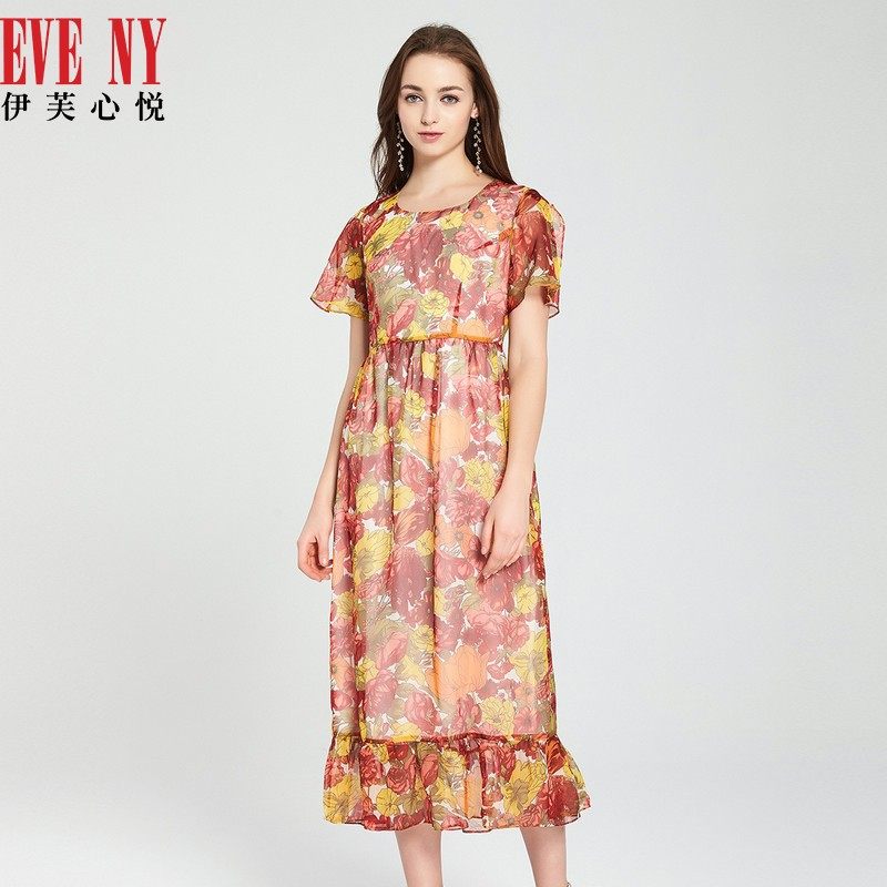 EVENY伊芙心悦春夏季通勤淑女印花短袖长款连衣裙