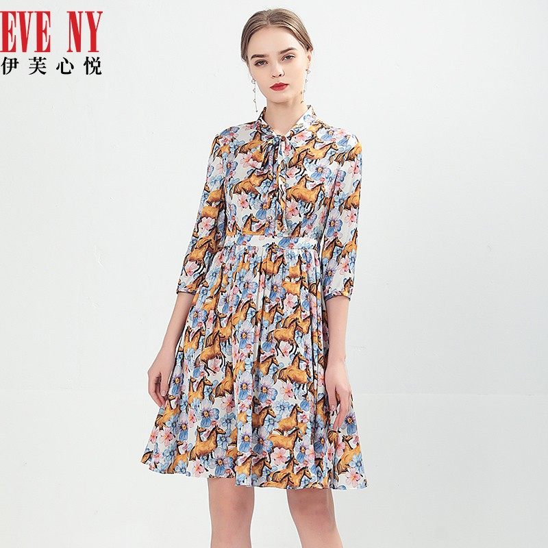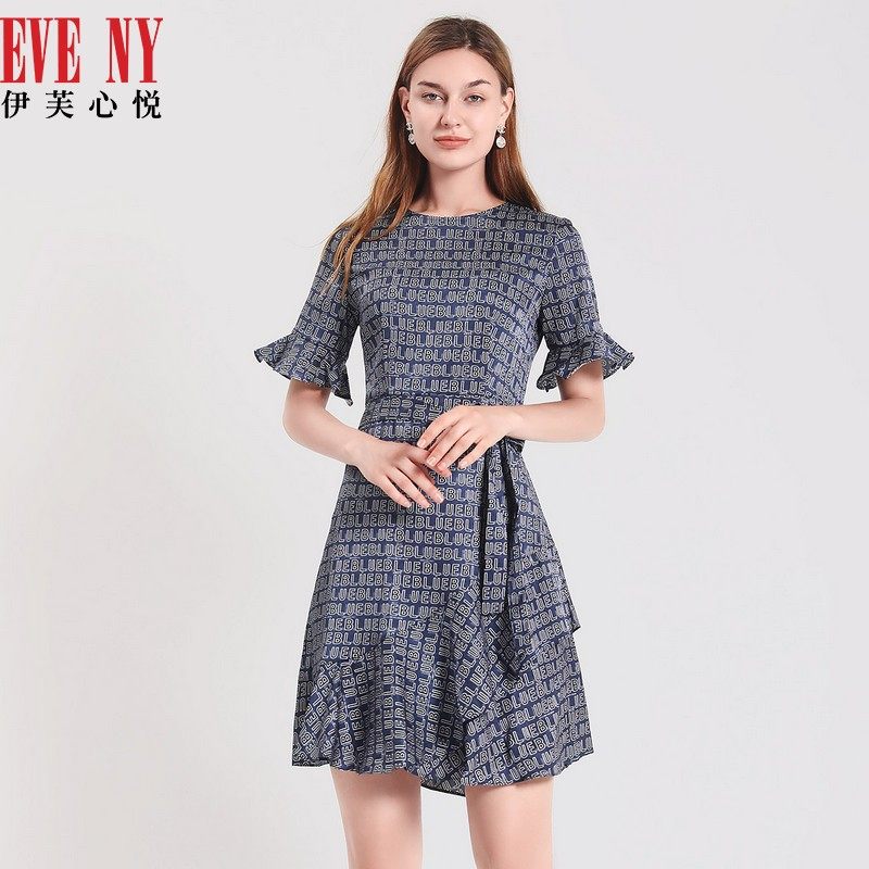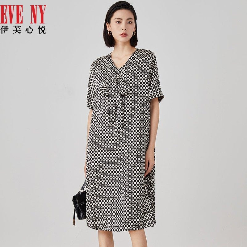 EVENY伊芙心悦春夏新款时尚气质职业女装裙子印花女式连衣裙