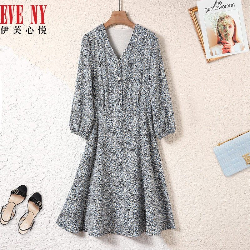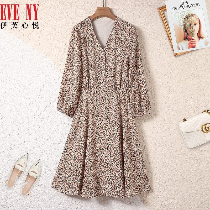 EVENY伊芙心悦夏季新款韩版V领碎花中长裙气质轻淑风连衣裙女