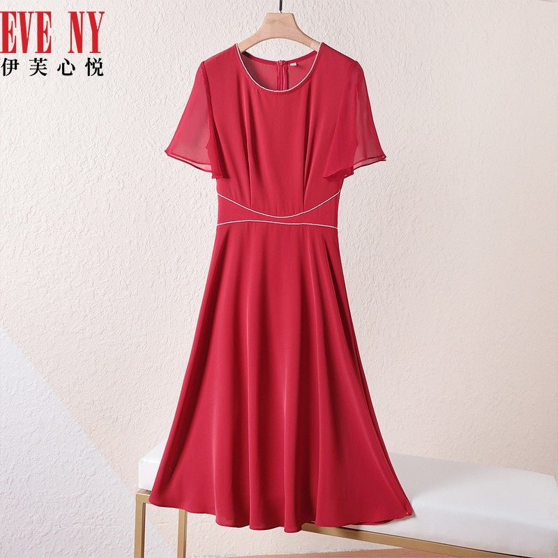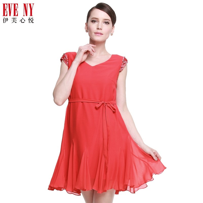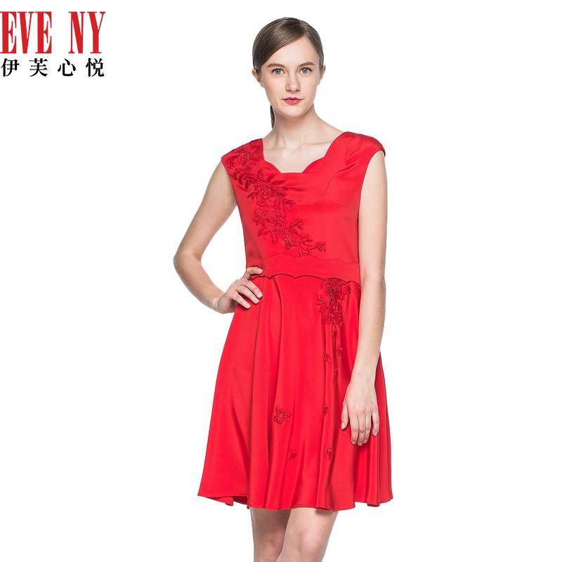 EVENY伊芙心悦春夏季天猫女装红色收腰OL风微透连衣裙