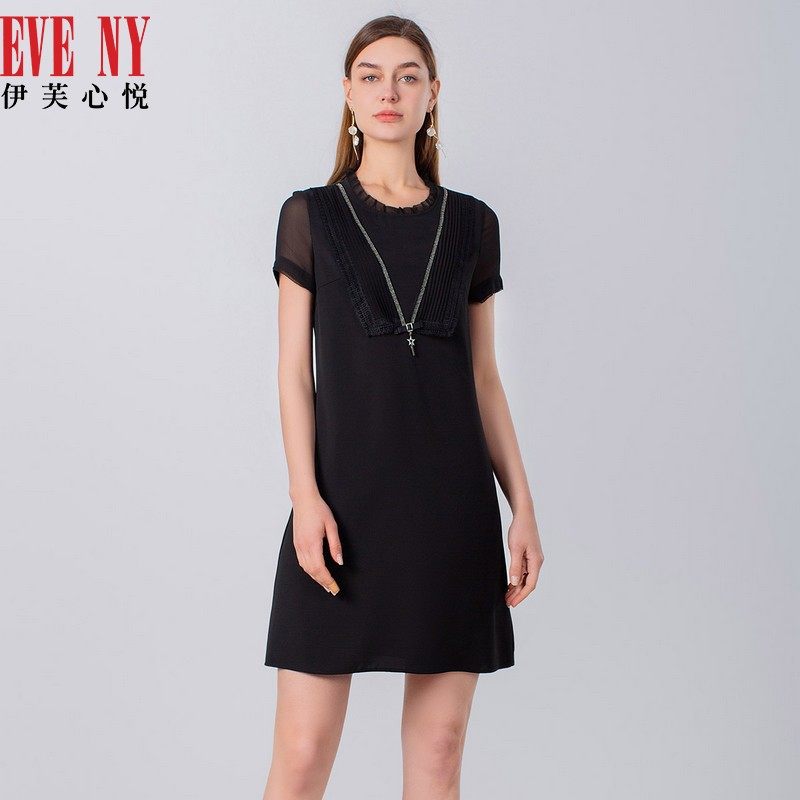 EVENY伊芙心悦春夏季时尚圆领中袖假两件修身连衣裙