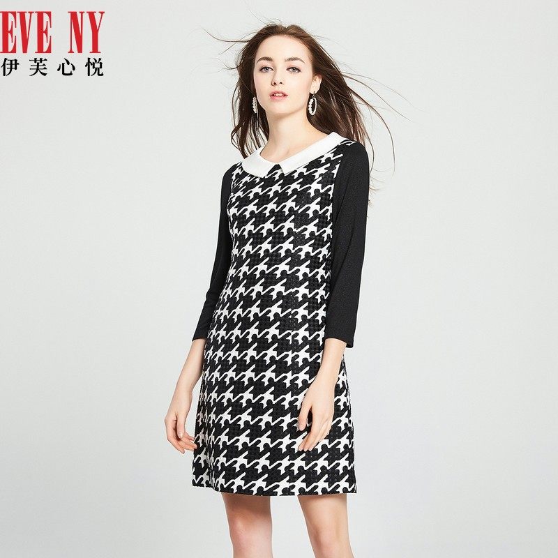 EVENY伊芙心悦职业春夏季淑女黑白配连衣裙