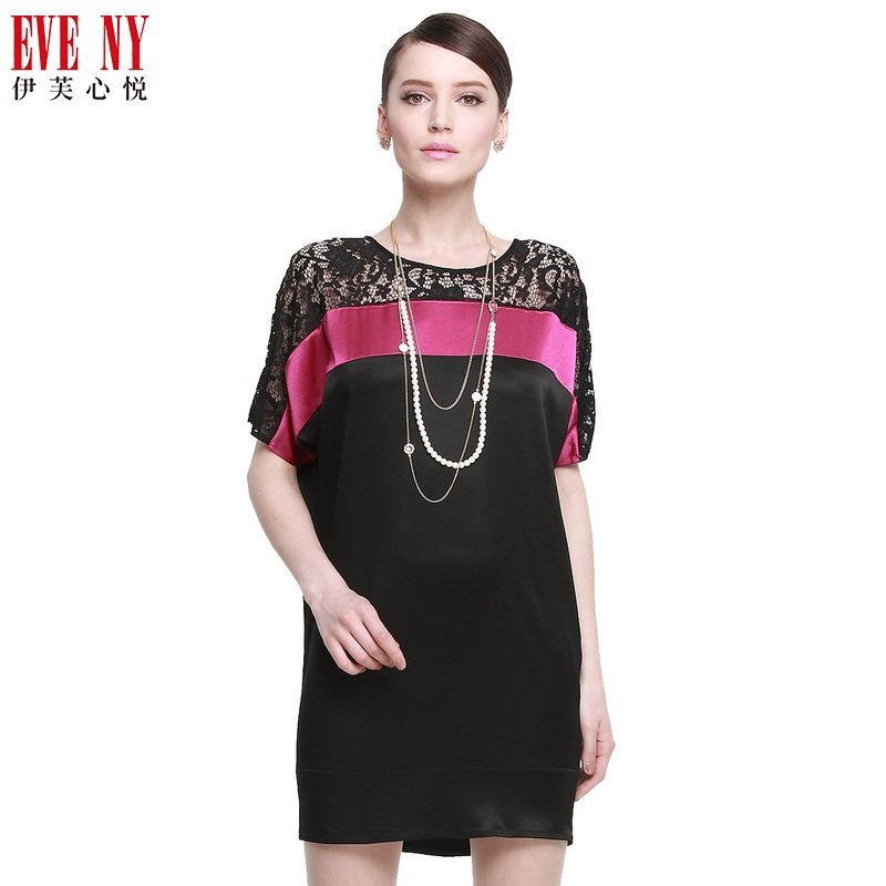 EVENY伊芙心悦春夏季女装通勤蚕丝褶皱蕾丝拼接连衣裙