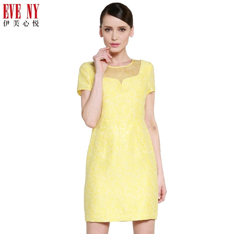 EVENY伊芙心悦春夏天猫女装优雅透视拼接提花连衣裙