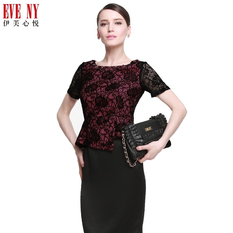 EVENY伊芙心悦春秋天猫女装优雅花型蕾丝短袖连衣裙
