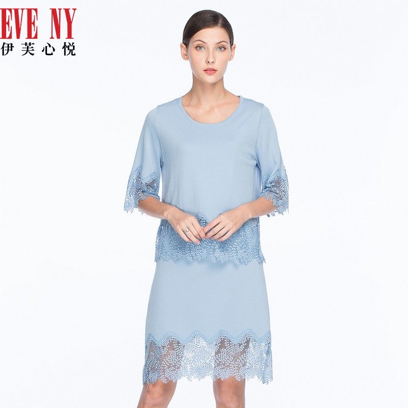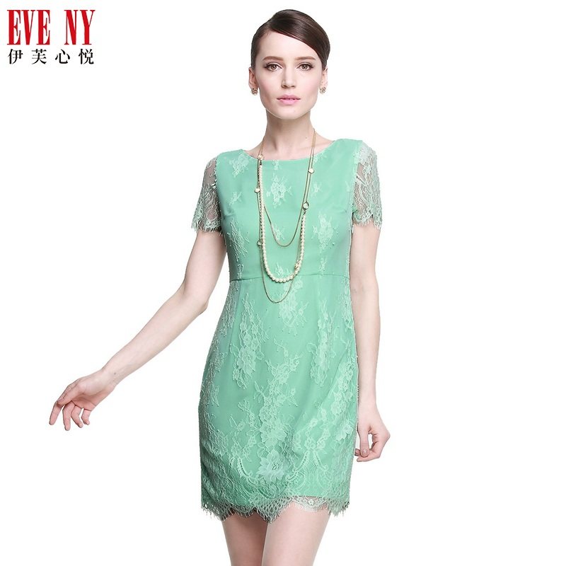EVENY伊芙心悦春夏季淑女蕾丝镂空女装裙子时尚女式连衣裙