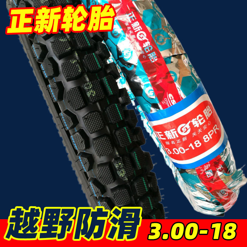 正新8层级摩托车300-18越野版防滑轮胎外胎300/3.00-18内外胎