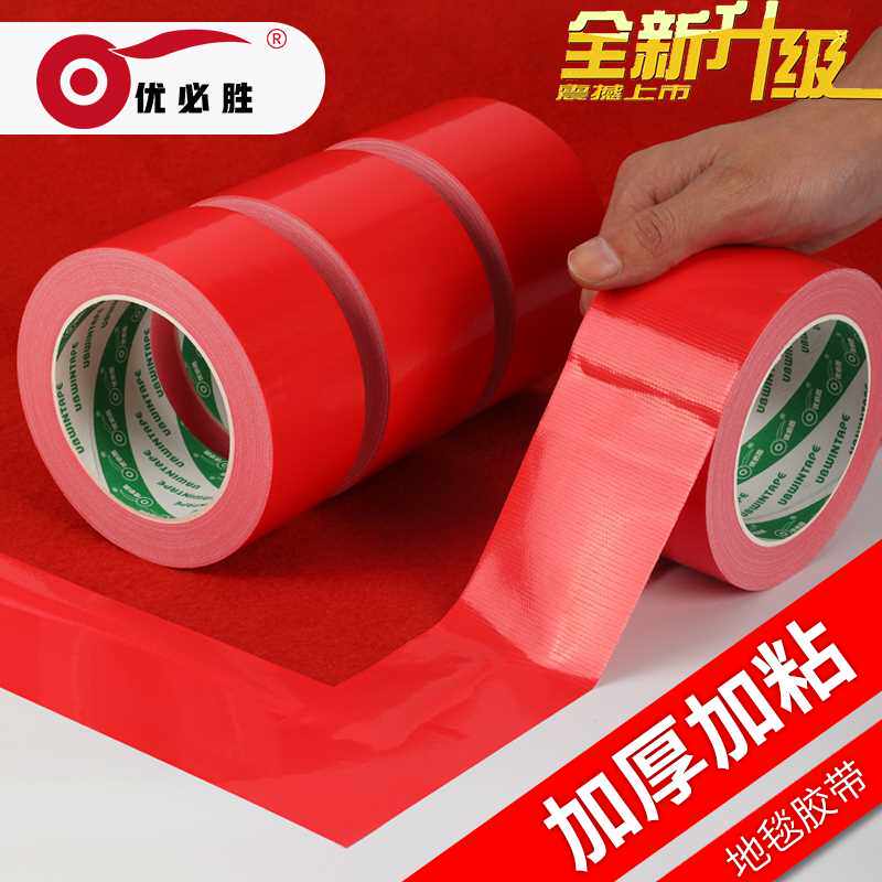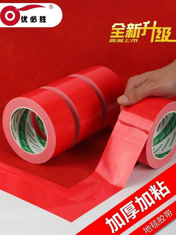 优必胜红色布基胶带单面强力地毯加厚防水不留胶装饰地面高粘无痕防水补漏贴地毯无痕强力胶布婚庆地毯胶