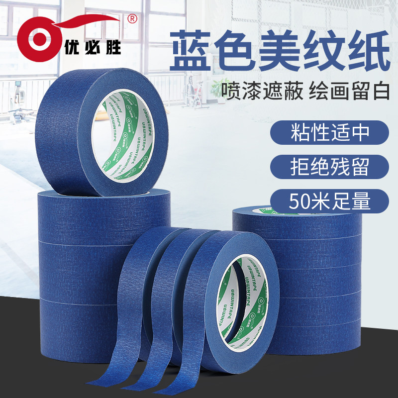 。优必胜蓝色美纹纸胶带喷漆装修遮蔽彩色美纹胶3D打印办公DIY彩