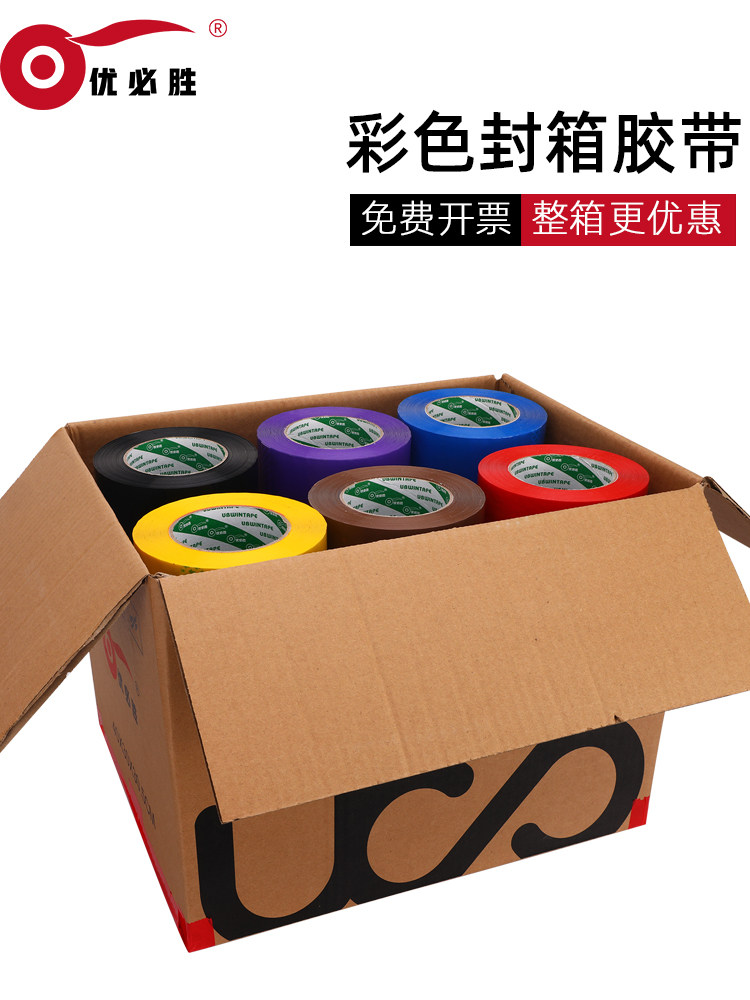优必胜彩色封箱胶带红色粉色黄色蓝色绿色白色棕色黑色胶布封箱透