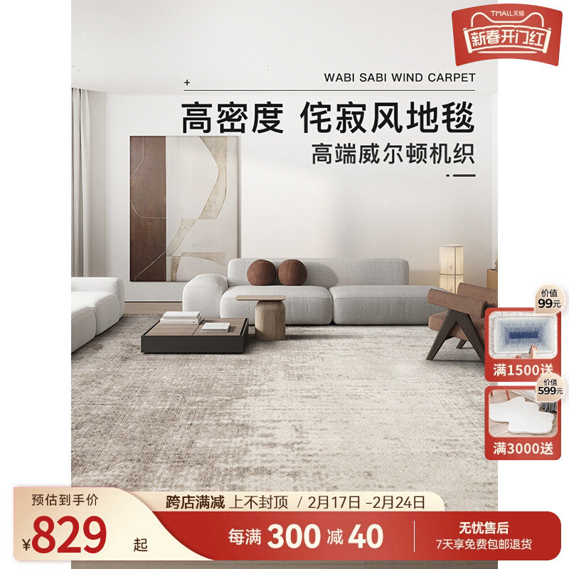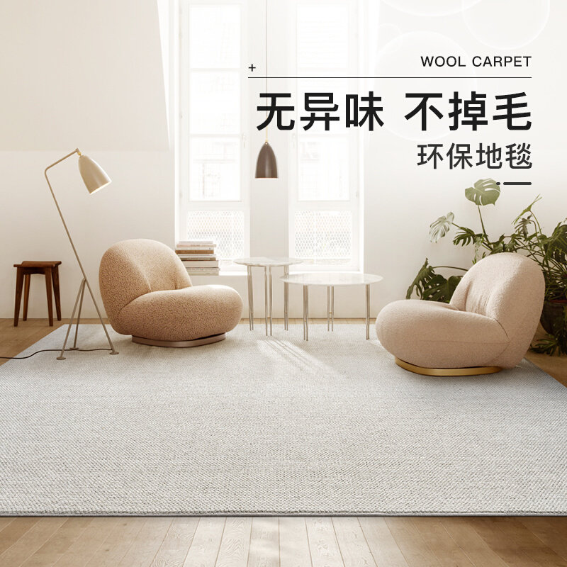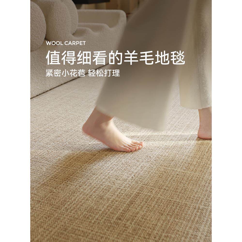 优立羊毛地毯客厅轻奢高级侘寂风现代简约风家用沙发卧室纯色地毯