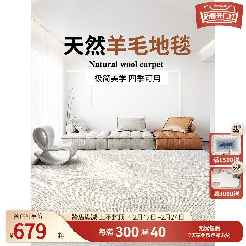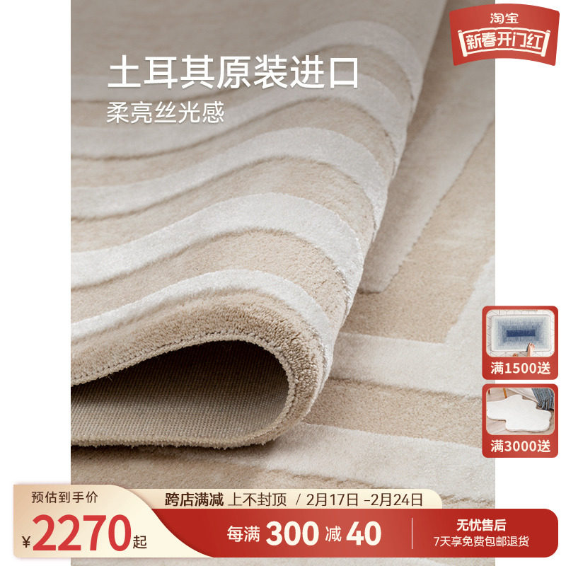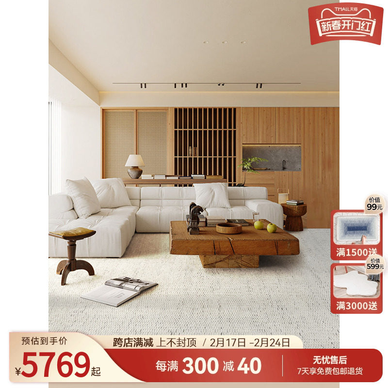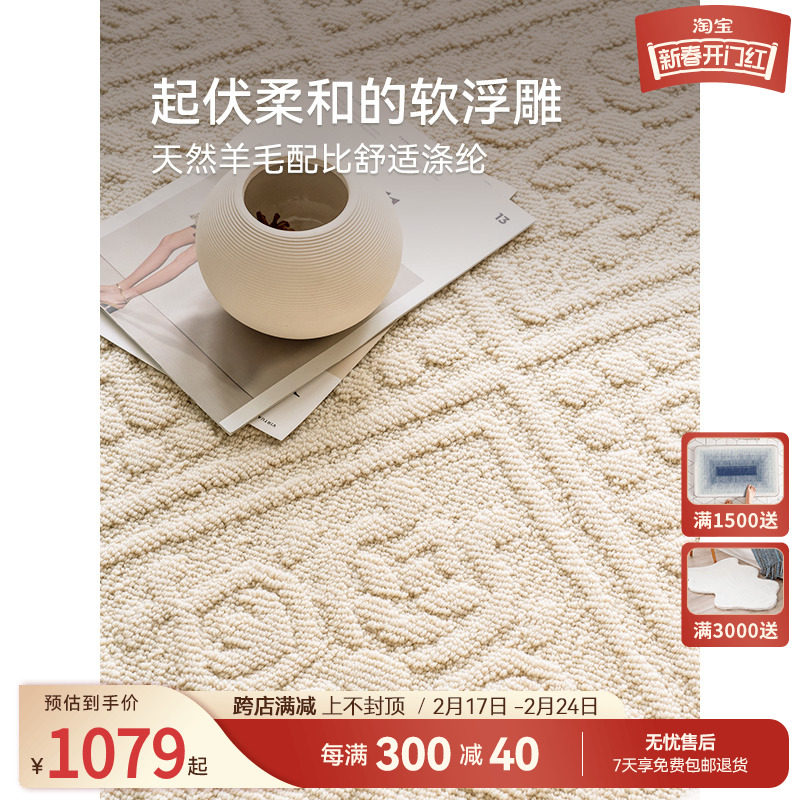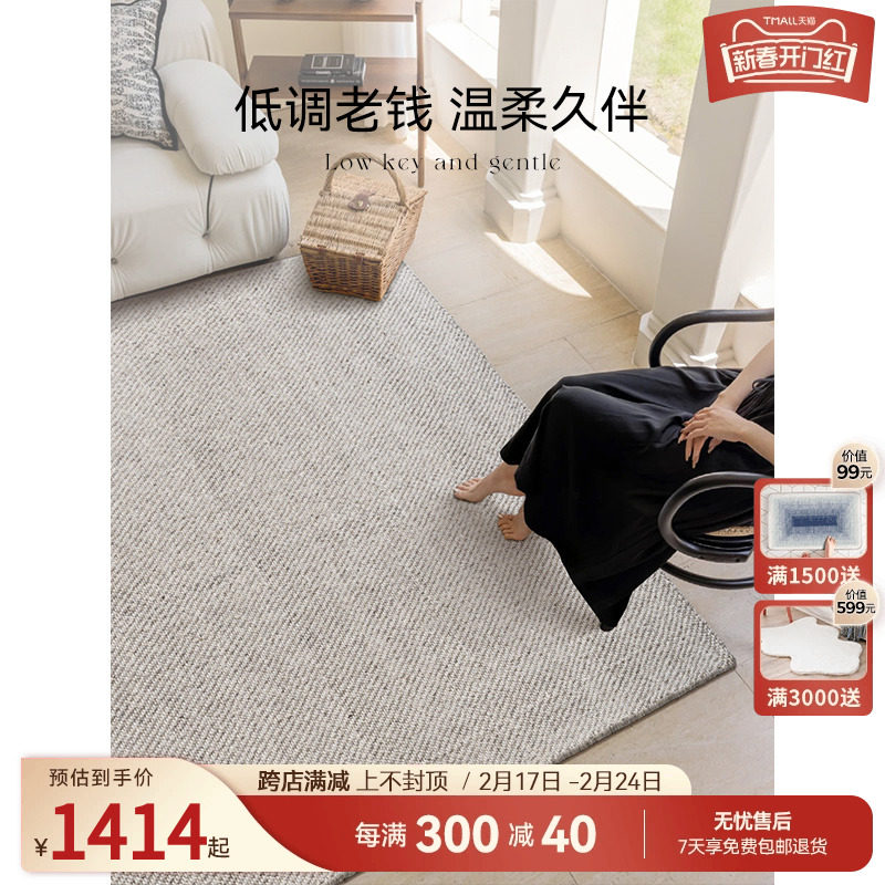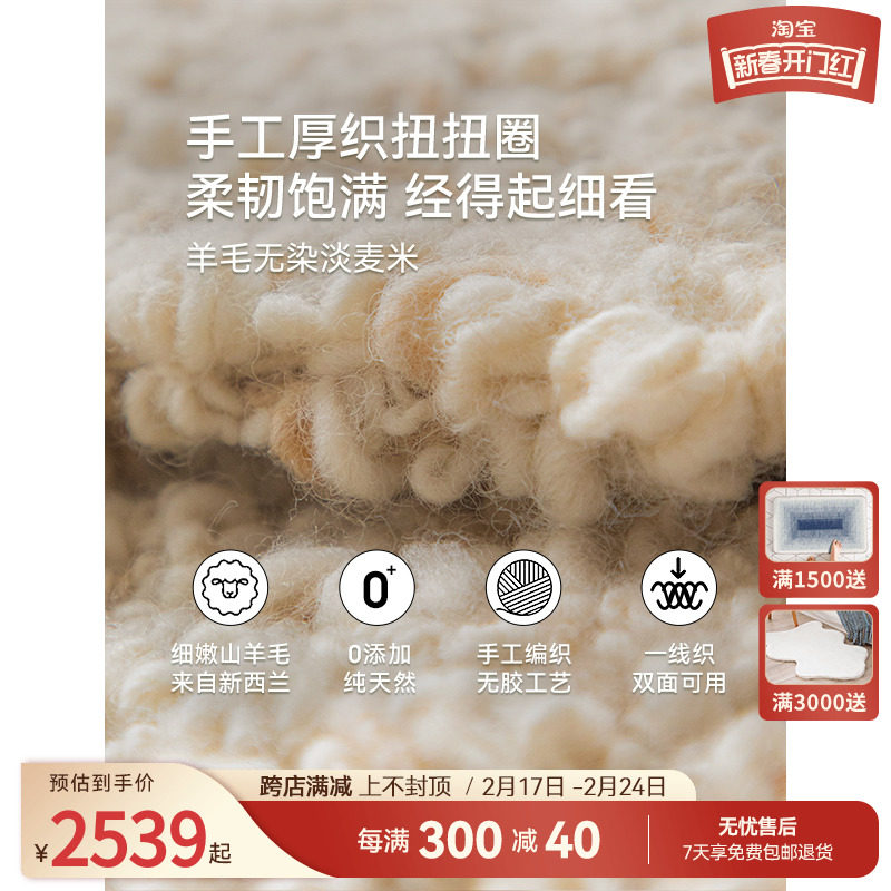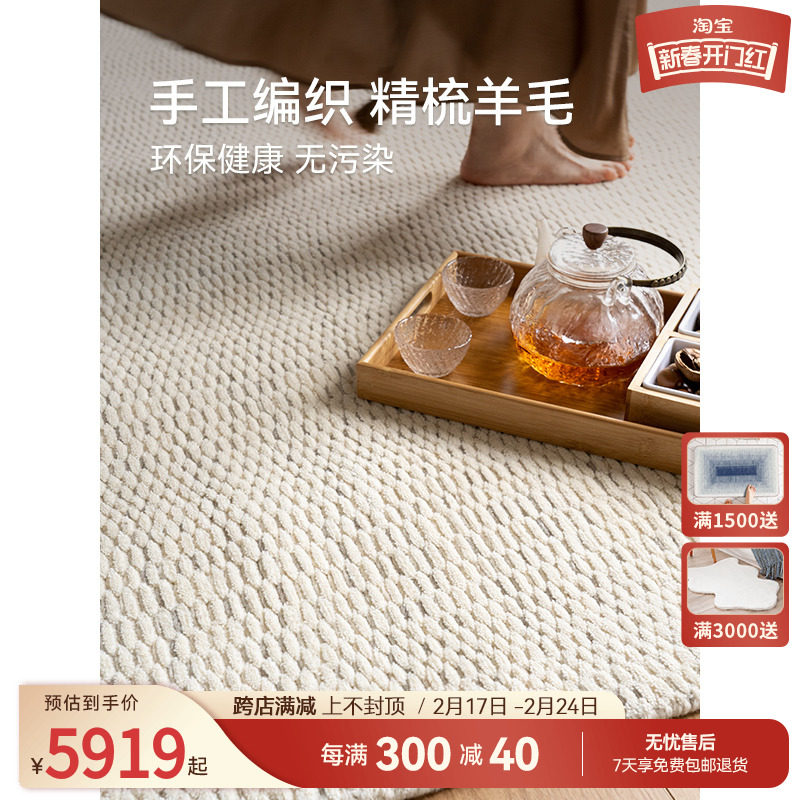 "0添加"进口无胶手工新西兰羊毛轻奢客厅地毯卧室沙发毯侘寂风
