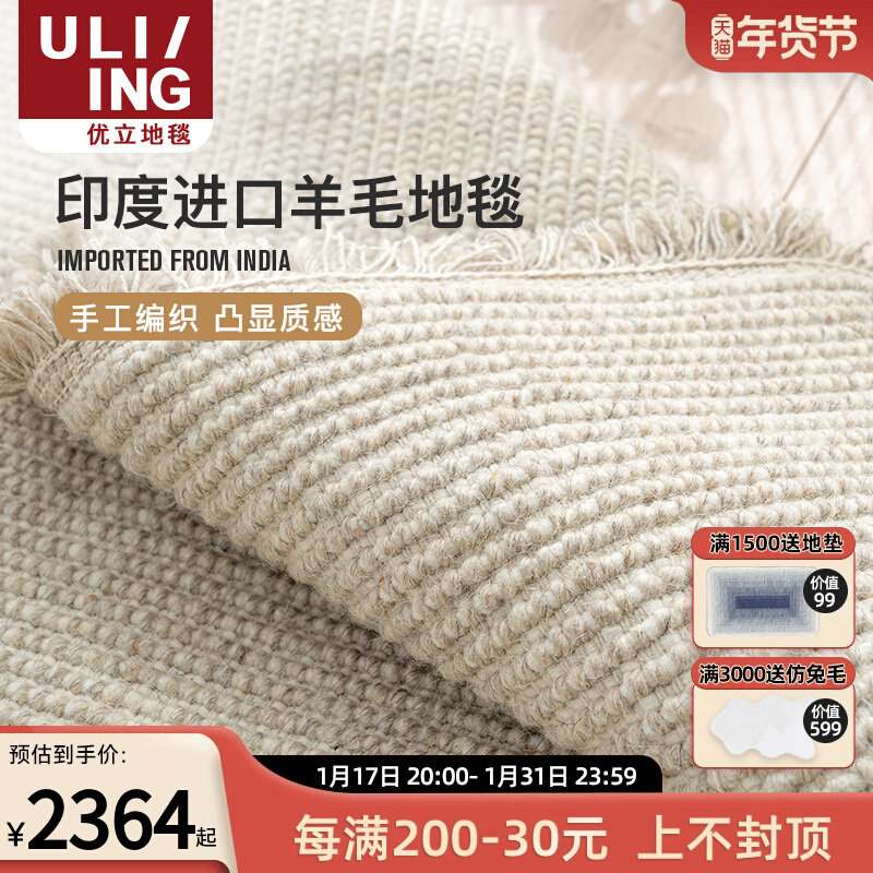 优立进口羊毛编织地毯客厅轻奢高级家用卧室简约风大面积沙发地毯