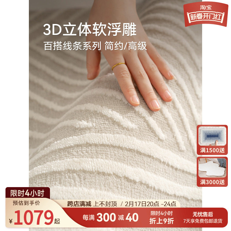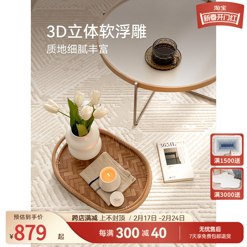 无胶水无异味!简约轻奢高级感卧室床边客厅沙发家用地毯2023新款