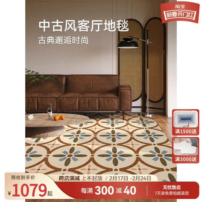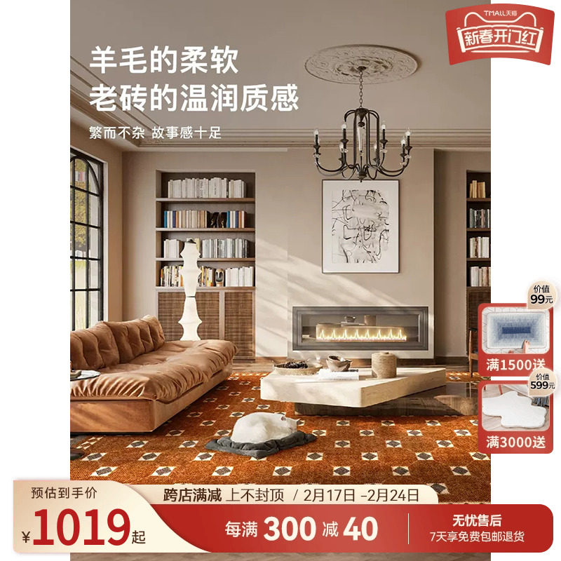 [优立羊毛地毯] 城南旧事 客厅沙发地毯复古百搭中古风耐脏易打理