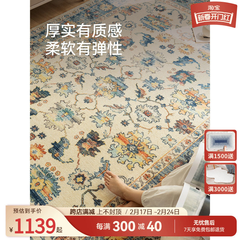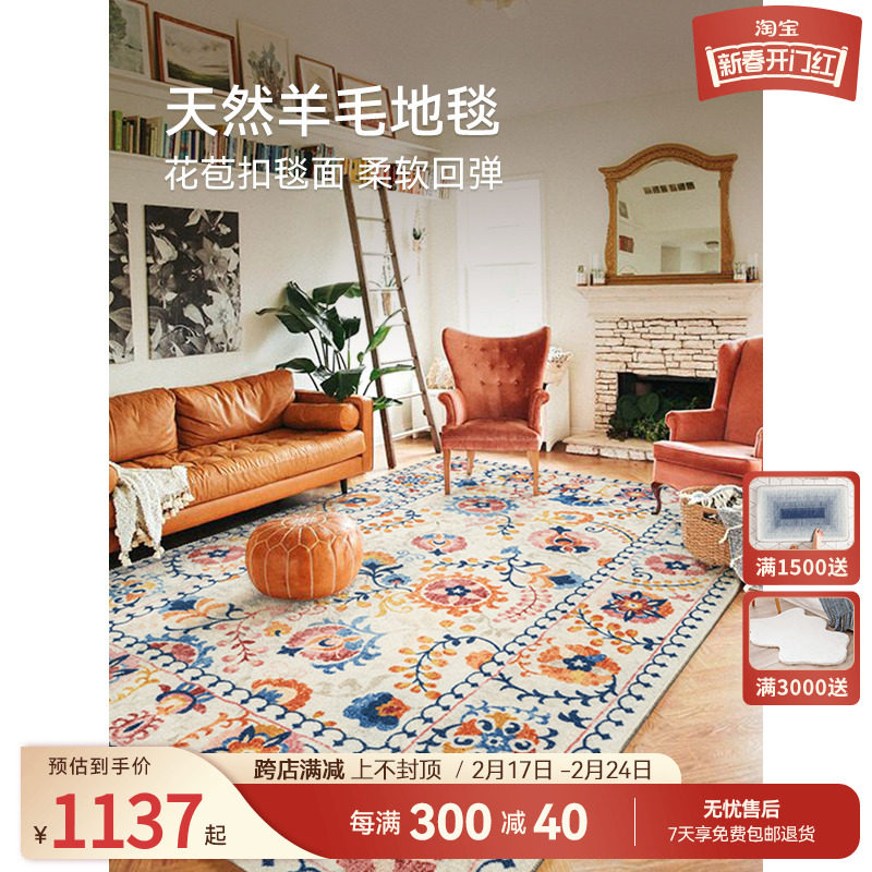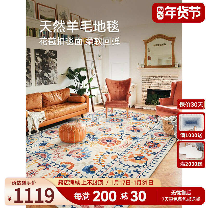 优立羊毛手工美式复古民族风沙发茶几毯羊毛地毯客厅轻奢高级感