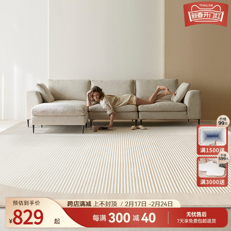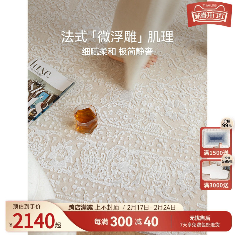 优立地毯客厅轻奢高级防水耐脏秋冬法风奶油免洗可擦卧室沙发地毯